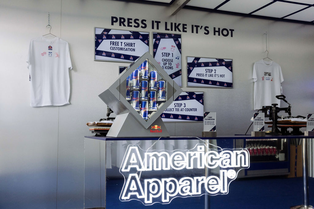 In close proximity to a full service bar, Red Bull presents a compact space that catches people off guard, a DJ playing inside what looks like a streetwear store, with people crowded around the edges. It’s a visual cue that something’s happening. No signage. No set times. Just music, energy, and curiosity.